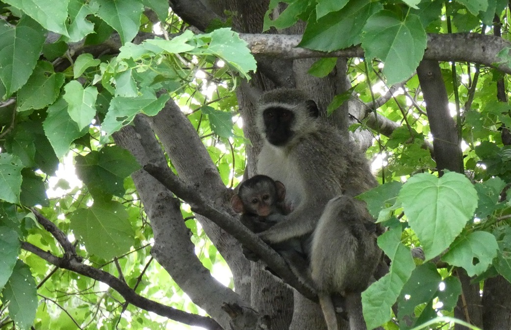 Nach der Kudu Island Tour sind wir zu spät dran, um noch unser nächstes Ziel, den Khumaga Campground zu erreichen. Wir finden eine sehr einfache Unterkunft in Gweta, wo man sich etwas wundert, dass Bleichgesichter hier absteigen. Zu Essen finden wir nichts, wir gehen mit ein paar Keksen im Magen ins Bett. Bis zum Gate in den Makgadikghadi Park sind es am Morgen 80km auf der Hauptstraße. Die ist zwar asphaltiert, dafür immer wieder mit zahlreichen und teilweise riesigen Schlaglöchern gespickt, eine echte Achterbahnfahrt. Vom Gate geht es noch 30km durch tiefe sandige Fahrspuren die richtig Spaß machen bis an das Tal des Boteti River. Zuerst sehen wir einzelne Elefanten, dann öffnet sich der Blick über das grüne Flusstal und wir sind verzaubert: Überall Elefanten, im Wasser Flusspferde und dazwischen die üblichen Herden Impala Gazellen. Im Busch Kudu und Springböcke. Noch sehr vorsichtig fahren wir in das Flusstal hinab und sind sehr beeindruckt, wenn die Dickhäuter in 20m Entfernung an uns vorbeilaufen. Sie nehmen uns zur Kenntnis, aber ignorieren uns weitgehend, machen höchstens einen kleinen Bogen. Später trauen wir uns etwas näher an den Hippo Pool heran, wohl wissend, dass diese Viecher ziemlich unangenehm werden können, sie liegen bei der Todesstatistik durch Wildtiere gemeinsam mit Elefanten und Büffeln ganz vorne. Allerdings kommen sie nicht gegen die Anophelesmücke an, die killt mittels Malaria mit Abstand am meisten Menschen. Am späten Nachmittag, nach Stunden des Staunens geht es ins sehr schöne Camp, wir duschen und kochen am Lagerfeuer. Eine Horde Meerkatzen ist auch am Platz und geschickt wie sie sind, lenken sie uns ab, während der Oberaffe ins Auto klettern und unsere Nudelpackung klaut. Unser Schimpfen und Steine werden beeindruckt sie wenig. Wir verbringen zwei Nächte hier und es ist bisher der absolute Höhepunkt der Reise.