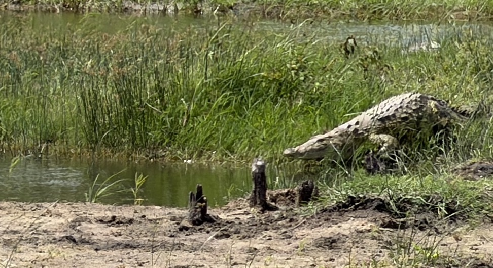 26. & 27.12.25 - Als Erstes brauchen wir Bargeld und eine Erstausstattung mit Lebensmitteln und Getränken. Gaborone ist eine durchaus moderne Großstadt, dennoch müssen wir uns erst mal an die Andersartigkeit gewöhnen. Wir finden eine große Mall und bekommen alles was wir brauchen. Bein Beladen des Autos fühlen wir den Temperatursprung von 0° zuhause auf 30° um 10:00 morgens heftig und freuen uns auf die Fahrt mit gut funktionierender Klimaanlage. Unser erstes Ziel ist das Khama Rhino Sanctuary. Nach dem Gate geht es ein paar Kilometer auf Sandpiste zu unserem Campground, Tisch und Stühle werden aufgestellt und das Dachzelt aufgeklappt. Alles spannend, weil zum ersten Mal. Silva zaubert etwas mit der Bordküche und völlig fasziniert machen wir einen Abendspaziergang durchs Camp. Die Geräuschkulisse, der Geruch, das Licht und die ersten Vögel und Antilopen die wir sehen begeistern uns.