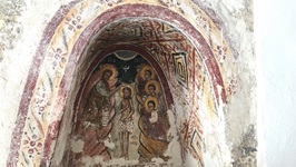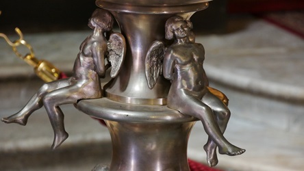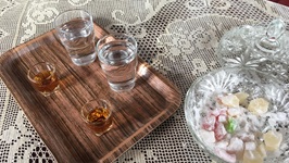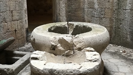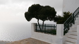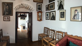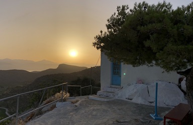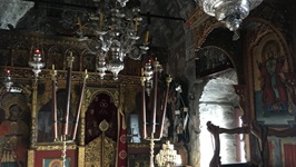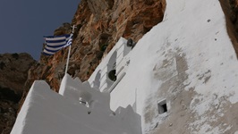 Wir sind die einzigen Besucher heute im Kloster und erfahren, dass sich im Sommer täglich! bis zu 1200 Menschen hier durchzwängen. Es leben noch drei Mönche hier zusammen mit 8 Security Leuten und einigen Feldarbeitern in der Saison. Wir bekommen ein Glas Likör und Wasser und die typischen süßen Stückchen, die wir auch schon vom Kloster auf Patmos kennen. We are the only visitors today in the monastery and learn that in the summer every day! Push up to 1200 people here. There are still three monks living here with 8 security people and some field workers in the season. We get a glass of liqueur and water and the typical sweet bits that we already know from the monastery on Patmos.