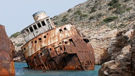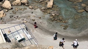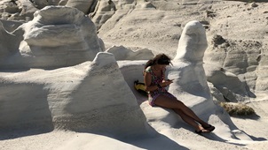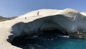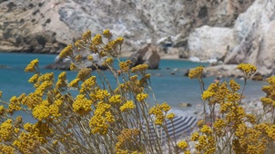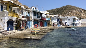 Milos - Insel der Farben und der Glückseligen - oder, das bessere Santorin. Hier ergänzen sich das "normale Leben" mit Arbeit im Bergbau und der Tourismus auf angenehme Weise, man lebt entspannt, ist fleißig, sogar der Bäcker macht nicht erst um 9:00, sondern um 7:00 auf. Wir fahren viele Kilometer mit dem Roller von Traumstrand zu Traumstrand und von alten Bergbauruinen zum passenden Museum.