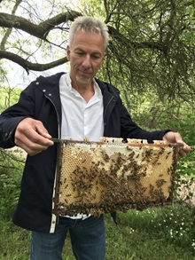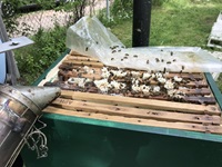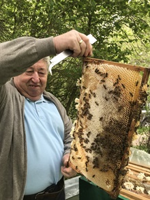 Wir nutzen die Zeit zuhause für Familienbesuche - bei Anneliese und Peter bekommen wir eine Einführung in das Imkerhandwerk. We use our time here for seeing our families - at Silvia´s parents we get a demo of beekeeping.