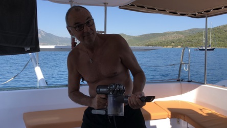 Vor der Winterpause liegen noch einige Dinge vor uns: ein kleiner Riss im Code D muss repariert werden, genauso wie ein Kratzer unterm Rumpf. Während der Fahrt von Sardinien nach Frankreich haben wir unbemerkt 400l Wasser verloren, der Wassermacher hat wohl dauergespült, vermutlich ist das Magnetventil defekt. Auch die Heizung leckt wieder, lästig und eines der Themen, mit denen sich Outremer noch beschäftigen muss. Mal sehen, was in den nächsten Tagen alles lösbar sein wird. (Anm.: ist repariert) Before the winter break, there are still a few things in front of us: a small crack in Code D needs to be repaired, as well as a scratch under the hull. During the drive from Sardinia to France, we lost 400 liters of water unnoticed, the water maker has probably rinsed permanently, presumably the solenoid valve is defective. The heating System leaks again, a bit annoying and one of the issues that Outremer will care for. Let's see what will be solvable in the next few days.