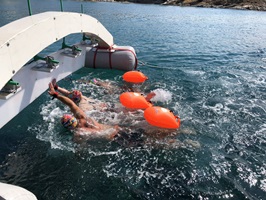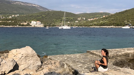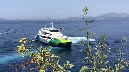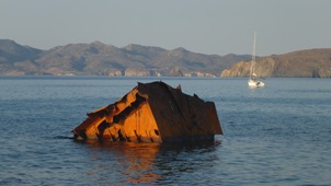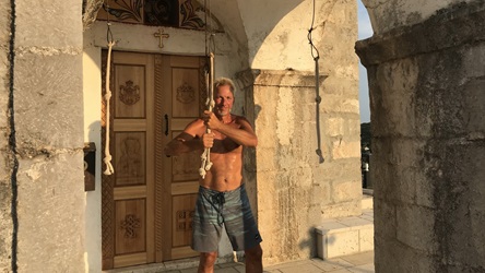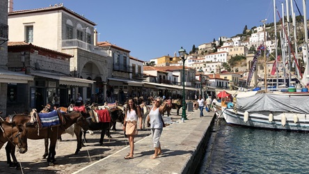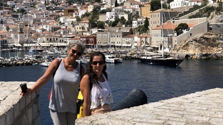 Wir nehmen die Beiden in Palaia Epidauro, dem alten Hafen von Epidaurus an Bord und haben am Nachmittag wider Erwarten guten thermischen Wind - gegen uns. Wir kreuzen fleissig bis Poros und ankern in der Nähe des Wracks eines alten Frachtschiffs. Von dort geht es weiter gegen den Wind nach Hydra, einer etwas speziellen Insel. Kein Autoverkehr aber touristisch auf dem Niveau von Disneyland: einfach zu schön, um wahr zu sein. Massen von Besuchern werden von den Ausflugsbooten für ein paar Stunden ausgekippt, gemolken und wieder abgeholt. Nächster Stop ist Spetsis, die Insel der richtig reichen Griechen, von da geht es weiter in den wunderschönen stillen Golf von Viviari. Hier bleiben wir ein paar Tage gemeinsam. The two board in Palaia Epidauro, the old port of Epidaurus. Different from our expectation we have good thermal wind - against us. We tack south towards Poros and drop anchor near the wreck of an old cargo ship. From there next day we continue against the wind to Hydra, a somewhat special island. No cars but touristy on the level of Disneyland: just too good to be true. Masses of visitors are dumped by the excursion boats for a few hours, milked and picked up again. Next stop is Spetsis, the island of the really rich Greeks. Next day afternoon we cruise on to the beautiful quiet Gulf of Viviari where we stay together for a few days.