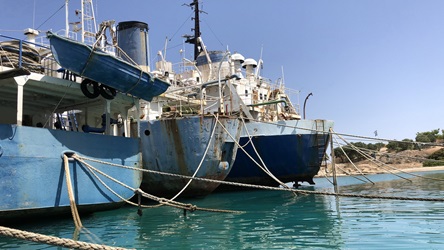 27.5.18 Von Ikaria nach Mykonos haben wir um die 25kn Wind und Maren und Stephan werden ordentlich durchgeschüttelt - vertragen es aber bestens. Unser graskarpfen läuft auf halbem Wind mit 2. Reff im Groß und voller Fock immer um die 10kn, in der Spitze mal bis 14kn, danach reffen wir allerdings das Groß weiter. Auf Mykonos heißt es dann Abschied nehmen, der Flieger der Beiden geht von hier. Schön, dass Ihr hier gewesen seid!