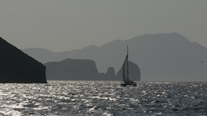 Von Roccella Ionica sind wir mit achterlichem Wind unter Code D die recht lange Strecke bis Reggio Calabria gesegelt und immerhin in der Abenddämmerung angekommen. Abends dann noch mit den Rädern in die Stadt, irgendwie hatten wir Hunger auf Zivilisation und wir wurden reichlich damit bedacht: Reggio hat eine tolle Atmosphäre und die Innenstadt ist wirklich wunderschön. Am nächsten Morgen waren wir unsicher, ob wir noch eine Nacht bleiben sollten, sind erst mal einkaufen gegangen und konnten dann gegen 13:00 dem tollen Wind der nach Norden durch die Straße von Messina blies, nicht widerstehen. Ruck zuck waren wir durch, mit meist über 10kn durch das Verkehrstrennungsgebiet und dann Kurs West auf Vulcano. Schöne Fahrt mit wenig Welle und langsam nachlassenden Wind, angefangen mit Reff 3 im Groß bis Code D am Abend. Um 18:00 fiel der Anker in der sehr schönen Nordwestbucht. From Roccella Ionica we sailed the 70 mile stretch to Reggio Calabria downwind and made it until dawn. In the evening we felt hunger for civilization and went by bycicle to town: And we were rewarded with a really nice atmosphere and Architecture - and last but not least Pizza & Pasta.
