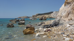 Milos - island of colors and blissful - or, the better Santorin. Here the "normal life" with work in the mining and the tourism complement each other in a pleasant way, one lives relaxed, is hard-working, even the baker does not start at 9:00, but at 7:00. We drive many miles with the scooter from dream beach to dream beach and from old mining ruins to the appropriate museum.