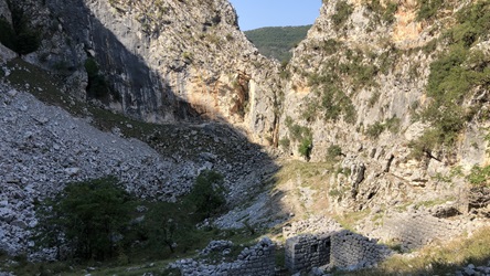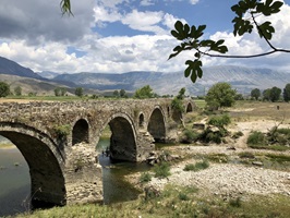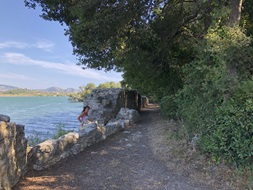 Wir hatten ein nettes Erlebnis mit dem Fährmann einer alten Seilfähre. Als wir nach der Besichtigung mit dem Roller weiter ins Landesinnere wollten, zeigte er hinter uns und meinte, Butrint läge dort. Es verirren sich wohl selten Touristen weiter ins Land. Dabei sind die Landschaften gewaltig und wunderschön.