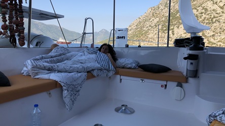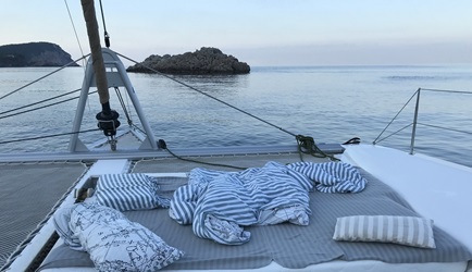 Maren und Stephan kommen am 19.5., zwei Tage nach unserer Ankunft aufs Boot. Es ist ihre erste Fahrt auf einem Segelschiff und wir beginnen mit kleinen Etappen, auch der Wind ist moderat. Schön, über alte Zeiten erzählen zu können und gemeinsam die Inseln zu erkunden. Maren & Stephan arrive 2 days after us. It´s their first time on a sailboat and we start with short legs. Also the wind is moderate and they can enjoy it. It´s nice to chat about old times and explore the Islands together.