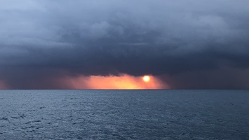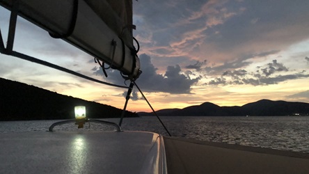 Im meistens ruhigen saronischen Golf erleben wir den bislang aufregendsten Tag auf unserem Boot: 5sm vor Aegina geraten wir in in ziemlich wilde Gewitterschauer und Böen. Das war noch kein Problem, nass halt und kaum Sicht. Wir sind sicherheitshalber im 3. Reff Groß und halber Fock unterwegs. Irgendwann schauen wir schräg nach achtern und sehen eine rotierende Wasserwand, vielleicht eine halbe Meile weg mit Kurs auf uns. Eine Windhose! Beide Motoren angeworfen, Vollgas Fluchtfahrt und derweil die Fock weggerollt, das Groß hätten wir nicht mehr runterbekommen … 5 min Zittern, dann hatten wir Abstand, das Ding ist nach Norden weggezogen und wurde immer größer, am Ende mit Rüssel hoch zur Wolke. Will mir nicht ausmalen, was das mit uns gemacht hätte. Aber damit nicht genug: 10min später, wir haben inzwischen das Groß geborgen und segeln wieder mit 6-8kn unter halber Fock Richtung Aegina, da kommt ein Flying Dolphin mit 33kn von schräg achtern auf uns zu, gefühlt voll auf Kollisionskurs. Er hupt – was das sollte weiß ich nicht - wir können ja nicht wegspringen, und macht den Eindruck, dass er vor uns durch will, wir drehen 20° ab, dann überlegt er es sich anders, und geht hinter uns durch, in vielleicht 20m Abstand. Wir hatten AIS an und waren unter Segel gut zu sehen. Entweder er hat geschlafen, hatte sonst ein Problem bei dieser Welle und Wind, oder er war ein Obermacho. Ich habe empört die Arme hochgeworfen, direkt nach uns fällt er dann aufs Wasser und fährt mit 8kn in Verdrängerfahrt weiter. Uff. das brauchen wir nicht öfter. In the usually quiet saronic golf we experience the so far most exciting day on our boat: 5 miles before Aegina we get into quite wild thunderstorms and gusts. That was not a problem yet, just wet and shaky. We cruise with third reef in our mainsail and half jib - conservative for safety. Suddenly we realize a rotating water wall heading towads us, maybe half a mile away. A pair of pants! Both engines fired, full throttle escape ride and meanwhile the jib rolled away, the main we would not have gotten down. We esacape, the thing moved to the North, still getting bigger, at the end Meeting ist Counterpart coming down from the clouds. I don't want to imagine what that would have done to us. But that's not enough: 10min later, now sailing under jib only with 6-8kn towards Aegina, a flying dolphin cruising with 33kn is heading towards us, felt on full collision course. He honks – what that should do I don´t not know-we can not jump away, and makes the impression that he wants to go through in front of us, we turn 20 ° to support that, then he changes mind, and eventually goes though behind us, in maybe 20m distance. We had AIS on and could be well seen being under sail. Either he slept, otherwise had a problem with this wave and wind, or he was an upmacho. I threw the arms up, right after us he falls on the water and continues with 8kn in down in the water, not on wings anymore. Uff. We don't need that more often.