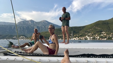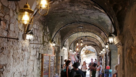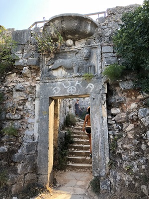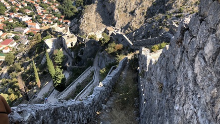 Es ist weiterhin fast unerträglich heiß - morgens um 8:00 und abends bis 22:00 ist es über 30° und die Sonne brennt schmerzhaft. Schön, dass Jürgens Wunde verheilt ist und er wieder ins Wasser kann. Nachdem wir vor all den schrecklich überfüllten und lauten Stränden in Albanien und im Süden Montenegros ziemlich die Lust verloren hatten, geht es uns jetzt wieder besser und wir fangen langsam mit dem Genießen wieder an. Wir machen jetzt jeden Abend einen Spaziergang - die öfter mal in der Macchia enden. Heute haben wir unseren Ausgang auf die Morgenstunden verlegt und sind nach dem braven Weg auf die Burg von Kotor hinten herum nach unten geklettert, einschließlich Nutzung eines alten Militärstollens. It continues to be unbearably hot - from 8:00 in the morning til 10 p.m. temperatures exceed 30°C and the sun is really burning during the day. Good, that Jürgens wound has healed and he can jump into the water again. After we lost our Passion a bit, travellig along the full and noisy beaches of Albania and southern Montenegro, we are back now in enjoyable mode. We finish almost every day with a walk in the dawn, sometimes ending up in pretty difficult terrain. Today we walked up to the Castle of Kotor and climbed down the backside using an old military tunnel.