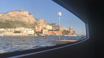 27.10 In Palermo stoßen Tibor sen. und Tibor jun. für eine Woche zu uns. Wir haben mutig geplant, mit den Beiden nach Sardinien überzusetzen und hoffen auf ein passendes Windfenster. Der Plan für die Tour ist: Palermo - Trapani - Favignana - Cagliari. Aber wie so oft beim Segeln, der Wind hat das Sagen und der will uns am Sonntag, dem 28. einfach nicht nach Westen segeln lassen. Es geht ganz gut los, bis zum Flughafen Cagliari segeln wir bei 15-20kn am Wind, dann wird es sehr schnell heftig. Wir streichen die Segel und Trapani, versuchen es unter Maschine noch in die Bucht von Castellamare zu schaffen, aber gegen 30kn Wind und steile Welle machen wir mit beiden Maschinen auf Marschfahrt gerade noch 3kn über Grund. Nach 20 min. und einer neuen Konsultation des Wetterberichts für den nächsten Tag brechen wir ab und segeln unter Fock zurück nach Palermo. Total irre, wie groß der Unterschied zwischen Gegen- und Rückenwind sein kann. Es macht richtig Spaß, die Wellen abzureiten.