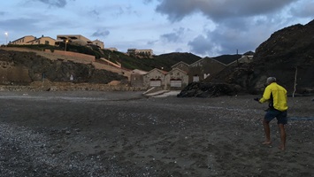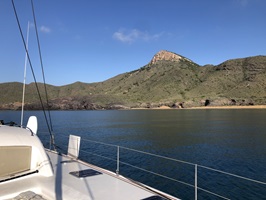 8.6.19 Es ist Sommer - permanent 25-30°, auch nachts kann man noch lange draußen sitzen und wir genießen das. Die Wassertemperatur im Mar Menor nähert sich 27°, leider hat das zusammen mit der Überdüngung durch die umliegende Landwirtschaft auch Einfluss auf die Wasserqualität. So schön es im Mar Menor auch ist, sind wir deshalb froh, uns gestern wieder ins Mittelmeer verlegt zu haben. Ein schöner Abend vor dem Capo Palo mit Schwimmen und kleiner Wanderung und heute ein flotter Ritt bei achterlichen Winden um 25 Knoten nach Cartagena gemeinsam mit unserem hiesigen Freund haben Spaß gemacht. Anbei noch ein paar Impressionen aus der Gegend.