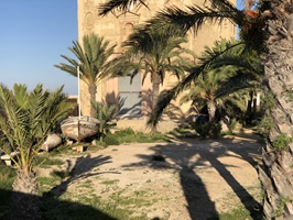23.4.19 Heute hat sich die Sonne durchgesetzt. Es ist immer noch windig und eher kühl, aber uns hält nichts mehr. Wir müssen raus und besteigen den nahegelegenen Puig Mala mit dem Kloster San Salvador auf der Spitze. Danach geht es weiter mit dem Mietwagen (6,90€/Tag) nach Lluc, zum vermutlich bekanntesten Kloster der Insel. Auch das erwandern wir uns und genießen die Umgebung und den botanischen Garten sehr. Auf dem Rückweg geht Silvia in Manacor noch 1 1/2h Schwimmen - endlich wieder nach langer Pause. Als wir mit dem Dinghy zum Boot wollen, stellen wir fest, dass der ausgelegte kleine Heckanker sich verfangen hat. Wir lassen ihn erst mal liegen, markieren ihn mit einer Wasserflasche und morgen muss wohl getaucht werden. Today the sun finally comes through and we go hiking. We visit two monasteries and on our way back to the harbor, Silvia uses the opporunity to go swimming in a public pool for 1 1/2 hrs. after a long break.