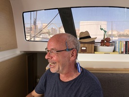 2.5.19 Am Nachmittag waren Friedhelm - einer der Teilnehmer unseres Spanischkurses - und sein Freund Thomas zu einem Kurzbesuch an Bord. Wir haben einen kleinen Ausritt in die Bucht von Pollenca gemacht, viel geredet, gelacht und den Abend mit einigen Tapas und Bieren in der Stadt abgeschlossen. Schön, dass Ihr uns besucht habt! In the afternoon we had Friedhelm, one of the guys we learned Spanish with, and his friend Thomas on board. We had a lot to chat and lough about, sailed some 15 miles into the bay and concluded the day with tapas an beers in town. Great that you´ve been here!