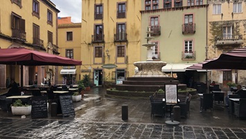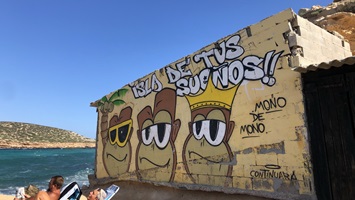 24.5.19 Vor gut zwei Jahren im Februar waren wir schon einmal hier. Damals war alles leer und vieles geschlossen. Wir fanden es schön, sicher auch noch von der Euphorie der ersten Wochen auf dem Boot getrieben. Und es ist immer noch schön - zu schön: In den alten Stadtteilen ist wirklich jedes Restaurant, jede Bar cool gestylt, jeder Laden hat hippe Klamotten und es sind noch ein paar andere Leute hier ;-) Nach ein paar Runden und einem Friseurbesuch laufen wir im Regen zurück zum Boot und finden dort eine einfache Strandkneipe, essen ein paar Tapas, trinken ein Bier und dann geht es zurück nach Hause. Der Wind hat gedreht, es steht 50cm Welle in der Bucht und unser Tiefenmesser zeigt in den Wellentälern noch 60cm unterm Kiel an. Das ist uns zu wenig, wir verlegen uns 3 Meilen nach Süden.