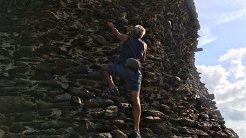 12.5.19 Von Berti stammte der Tipp, sich die Cava Tancada nördlich von Alcudia anzusehen. Mit dem Rad ging es von Pollenca 20km nach Osten, gut 200 Höhenmeter rauf und runter und dann noch eine gute halbe Stunde zu Fuß an die Klippen in der Bucht von Alcudia. Und dann kam die große Überraschung: Wir hatten mit ein paar Metern in eine unspektakuläre Höhle gerechnet und deshalb leider auch nur die Taschenlampen der Handys dabei, aber die Höhle entpuppte sich als richtig große Tropfsteinhöhle mit mehreren Hallen. Etwa 200-300m sind wir hineingelaufen, dann wurde es uns etwas mulmig, nur mit den Handylichtern. Überhaupt nicht erschlossen, war das ein richtig schönes Abenteuer. Unter anderem hat uns ein ganz schlanker Stalaktit und -mit, der ca. 10m hoch vom Boden bis zur Decke reichte begeistert. Am Ende der Tour gab es noch einen erfreulichen Anruf vom Filius zum Muttertag ;) A good friend gave us the hint: Cava Tancada north of Alcudia. A cave, open to be explored but not equipped at all with anything. And it exceeded our expectations by far. We went in for about 300m just using our smartphone torches.