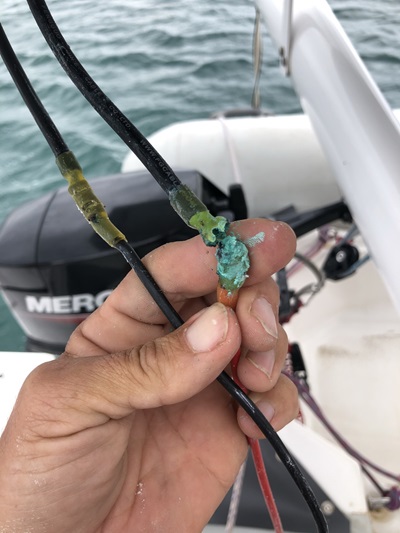 18.1.19 Seit Dienstag arbeiten nun mehrere Leute von Outremer superfleissig und gut an den offenen Punkten. Heute am Freitagabend sind wir fast fertig, vor allem die staubigen Arbeiten an der Küchenplatte und die komplette Überarbeitung der Heizung sind durch. Klasse Job, danke Outremer! Wir haben außerdem das Rigg überprüfen lassen und eine ganze Reihe weiterer Wartungsarbeiten gemacht. Nur die Ankerwinsch ist noch offen, die gelieferten Kohlebürsten passten nicht und der Kommutator ist so verschlissen, dass neue Kohlen auch keinen Sinn gemacht hätten. Since Tuesday a number of Outremer guys work hard on the open issues. Now, Friday evening the works on the kitchenplate and the overhaul of the complete heating System are finished. Great Job, Thanks Outremer! Besides that, the rig has been checked by two professionals and some other maintenance was done. Only our Lewmar windlass still is a problem, the new brushes sent don´t fit and the commutator is anyway too worn out to put new brushes in.