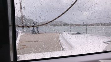 12.11.2019 Der Wind aus den Bergen läuft zur Form auf, es bläst konstant über 30kn und in der Spitze bis 50kn - gut so, dann können wir den Liegeplatz schon mal so richtig absichern. Nur die nötigen Arbeiten am Boot müssen wir verschieben, das macht gerade keinen rechten Spaß.