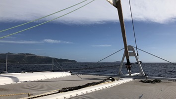 12.11.2019 The downwinds from the mountains blow constantly over 30kn, peaking at 50kn. At least this gives us the Chance to test our lines. But we have to postpone some necessary work on the boat.
