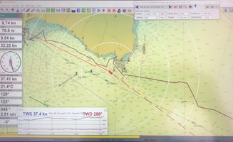 23.10.19 Im Herbst kann es im Mittelmeer ganz schön ungemütlich werden: Seit gestern Abend liegen die Windgeschwindigkeiten permanent zwischen 35 und 50kn, also Windstärke 8-9. Gut dass die Wetterberichte inzwischen so präzise sind, dass man es bei den im Mittelmeer üblichen Distanzen weitestgehend vermeiden kann, an solch einem Tag auf See sein zu müssen. Autumn in the med can be a bit uncomfortable: since last night windspeed is permanently above 35kn, up to 50kn in gusts, which means 8-9 beaufort. Fortunately forecasts these days are good enough to avoid to be out in such weather on average med-routes.