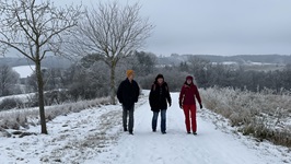 11.12.2021 - Die letzten Wochen waren prall gefüllt mit Besuchen, Arbeit an verschiedenen Projekten und ab und zu etwas Heimweh nach dem graskarpfen. Gestern Abend haben wir mit Cathleen und Michael in dichtem Schneetreiben eine kleine Wanderung durch und um Scheuring gemacht und diese schöne Stimmung erlebt: