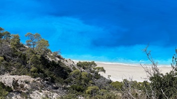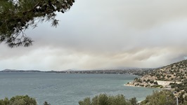29.8.2021 - Nach fünf Tagen an der Mole vor der Brücke war ich den Staub ziemlich leid, der Rücken soweit wieder ok und die reparierte Fock mithilfe zweier Schweizer Nachbarlieger wieder installiert. Der Staub wurde am Abend netterweise von einem ordentlichen Gewitter weggewaschen. Also Leinen los und schnell einen Ankerplatz finden, an dem das Wasser türkis und einladend ist. Der Surfstrand westlich von Lefkas lud zu einer Übernachtung ein, leider wurde es mit dem Kiten nichts, kein Wind an diesem Tag. Erst am späten Nachmittag kam eine Brise, da stand aber so viel Schwell auf den Strand, dass das Anlanden mit dem Dinghi ein ziemlicher Stunt geworden wäre. Also Anker auf und mit der Abendbrise Richtung Norden. Die uns schon bekannte Voutoumi Bucht auf Andipaxos wurde zum Ziel erkoren und es gab trotz vieler Boote sogar noch einen halbwegs guten Ankerplatz. Heute morgen zog dann ein ordentlicher Regenschauer an der Küste vorbei und sorgte für phantastische Wolkenbilder - eine schöne Abwechslung zum immerblauen Himmel der letzten Monate, auch wenn sich so natürlich schon der Herbst ankündigt.