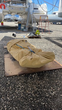 - Fock, Großsegel und neuen Lazybag wieder anschlagen
