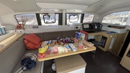 - Gründlich das ganze Schiff säubern und mit dem Polieren des Decks beginnen. Morgen kommt ein Team, um die Rümpfe außen zu machen, das schaffe ich alleine vor dem Slippen nicht mehr.