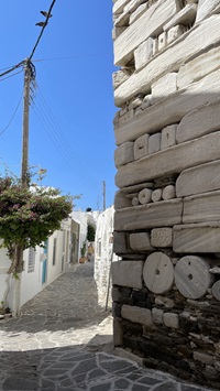 Eine sehr langgestreckte Insel mit eigenem Wetter. Auf der Westseite staut sich der Meltemi und über den Gipfelkamm rasen die Wolken. In Lee auf der Ostseite ist es extrem trocken. Im Lauf des Tages kämpfen die lokalen Land/Seewinde mit den großräumigen Winden um die Vorherrschaft. Entsprechend kreiseln wir am Anklerplatz jeden Tag zweimal um 360°, gut dass der Sand so gut hält hier. Wir machen eine ausgedehnte Tour mit dem Roller, allerdings kapitulieren wir dann doch auf 2/3 der Strecke in Richtung des Dorfes Olymbos ganz im Norden der Insel. Es soll dort sehr malerisch und authentisch sein, aber wo ist es das nicht in Griechenland. (Naja, natürlich auf Santorin und Mykonos) Zeit zum Schwimmen, Einkaufen und Bummeln. An elongated island with its own weather. On the west side, the Meltemi drives clouds the ridges. Downwind on the east side it is extremely dry. During the day the local land/sea winds fight with the large-scale winds for dominance. Accordingly, we circle 360° twice every day at the Ankler site, glad that the sand holds so well here. We make an extended tour with the scooter, however, we capitulate at 2/3 of the distance to Olymbos in the very north of the island. It is supposed to be very picturesque and authentic there, but where is it not in Greece. (Well, of course on Santorini and Mykonos) Time for swimming, shopping and strolling.