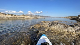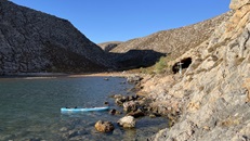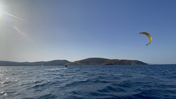 31.5.2021 - Vorgestern endlich ein paar Kitesurfstunden mit Erfolg. Kann jetzt Höhe zum Wind laufen und habe Schirm und Brett nach dem ein oder anderen Sturz auch wieder einsammeln und starten können. Heute zum Einkaufen und Diesel bunkern nach Paros getuckert und heute abend in einer einsamen Bucht im Norden von Andiparos. Herrlich ist es hier, ich bin völlig allein mit der Natur. The day before yesterday finally a few successful kitesurfing lessons: Can gain height to the wind and could collet and restart board and kite after some crashes. Today shopping and filling up Diesel and tonight anchoring in a secluded bay at the north tip of Andiparos. It´s wonderful out here, completely alone with nature.