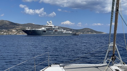 26.5.2021 - Das Wassern des Bootes gestern ging ruck-zuck, bei wechselnden schwachen Winden ist graskarpfen nach Ägina gesegelt. Unterwegs Inbetriebnahme des Wassermachers, er funktioniert noch, bin erleichtert. Abends dann Klarmachen des neuen SUP´s, das wir anstelle des Kayaks jetzt an Bord haben. Macht Spaß, ist eine gutes Oberkörpertraining und nimmt auf dem Trampolin kaum Platz weg. Heute Motorsegeln Richtung Kap Suonion, falls noch Wind aufkommt vielleicht auch weiter. Slipping yesterday was easy and with unstable low winds graskarpfen sailed to Aegina. On the way commissioning of the watermaker, it still works, I´m relieved. In the evening then setup of the new SUP that replaces our kayak. It's fun, nice upper body workout and takes up very little space on the trampoline. Today motor sailing towards Cape Suonion, if more wind comes up, maybe further.