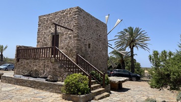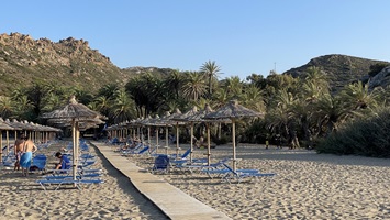 16.6.2021 - Am Morgen bei einem Landgang haben wir ein altes Geschütz vor der Stadt Chalki besichtigt. Irgendjemand hat sich darum gekümmert und es abgeschmiert, alle wesentlichen Funktionen waren noch vorhanden. Wir konnten es nicht lassen, daran herumzuspielen und haben hinterher herausgefunden, daß es eine Bofors 40mm Flak war, eines der meistgenutzten Geschütze überhaupt. Dann ging es in sehr flotter Fahrt mit gut 20 kn Rückenwind und leider eher unangenehmer Welle an die Südspitze von Rhodos. Hier liegt die kleine Halbinsel Prasonisi, die über einen langen Sandstrand mit der Hauptinsel verbunden ist - ein idealer Kite- und Surfspot. Morgen will sich Jürgen hier mal versuchen.