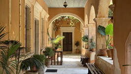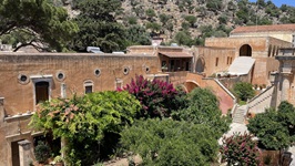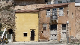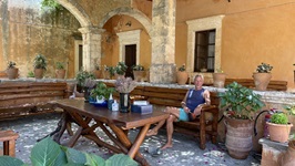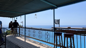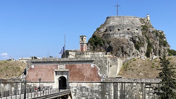 Nachmittags ging es mit dem Roller zu einer Erkundungsfahrt des Inselnordens. Über recht abenteuerliche kleine Strassen erreichen wir die sogenannte Geisterstadt Paleio Peritia auf 400 Höhenmetern in einem nach Norden offenen und sehr fruchtbaren Tal gelegen. Landschaftlich wunderschön, allerdings deckte sich der Begriff "Geisterstadt" nicht mit unseren Vorstellungen von so etwas. Etwa ein Drittel der alten Häuser ist renoviert und - man darf raten - zu einer Gaststätte ausgebaut. Der Rest gammelt vor sich hin und ist mit allerlei hässlichen Accessoires der Neuzeit verschandelt. Es gibt schöne Ecken, wenn man diese Dinge vor dem geistigen Auge wegretuschiert. Nach einer Stunde Erkundung deutet sich der Regen an und wir sausen mit allem, was der 125er Roller hergibt, zurück nach Gouvia.
