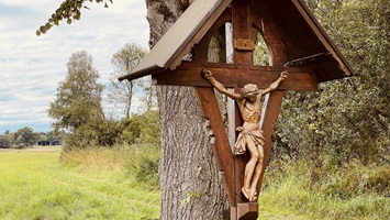 10.8.2021 - Am Wochenende tat es wieder das wohl Übliche in diesem Jahr in Deutschland: es regnete. Wir haben uns nicht beirren lassen - schließlich gibt es gute Kleidung - und sind in Sachen Heimatkunde losgezogen: Westlich des Ammersee liegt das Einzugsgebiet der Windach und ein kleiner Staudamm, dahinter dann Sumpfgebiete und Wiesen. Das üppige Grün ist eine Labsal für die Augen nach den kargen griechischen Inseln. Und für´s Seelenheil ist auch allweil gesorgt.