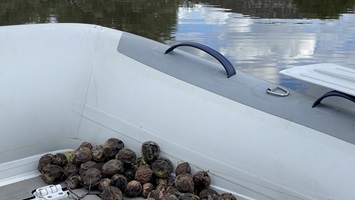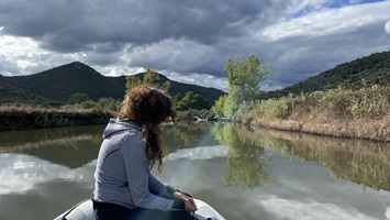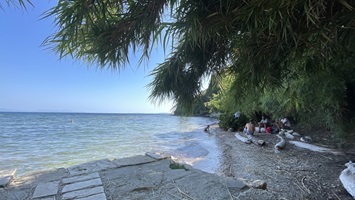 25.-27.7. 2021 - Wir erkunden die Umgebgung der Lagune, machen das Boot fertig zum Verlassen und lassen alles ruhig angehen. Es ist sehr heiß und das Wasser der Lagune lädt uns nicht zum Baden ein, obwohl sehr viele Griechen das hier tun. Weiter draußen werden auch Schlammbäder genommen. Das ist bestimmt sehr heilsam gegen alles Mögliche, aber wir können uns nicht dazu durchringen. Wir machen lieber eine Ausfahrt mit dem graskarpfen aus der Lagune ins blaue Meerwasser. Auf dem Weg wird der Name des Bootes zum Programm und wir fahren Slalom um die Grasfelder.