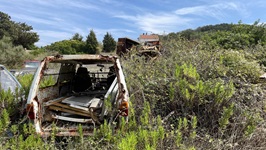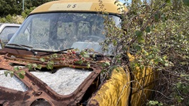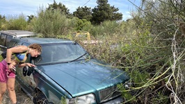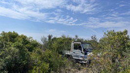 5.-7.9.2021 - Von Gouvia brechen wir morgens bei völliger Windstille auf und nutzen die 1 1/2 Stunden unter Maschine, unsere Wasservorräte wieder aufzustocken und eine Waschmaschine laufen zu lassen. Ab der Meerenge zwischen albanischem Festland und Korfu können wir segeln - mit sehr wechselhaftem Wind. Eine Stunde Flaute nutzen wir für ein gemütliches Mittagessen, während wir bei 0,0 kn Wind mit immerhin 1 kn Fahrt Richtung Erikoussa driften. Dann kommt die Nachmittagsbrise und das Code D geht rauf - so können wir unter Segel gut mit zwei Charterkatamaranen unter Motor bis in die Bucht von Erikoussa mithalten. Abends wird dann unsere Tradition wieder aufgenommen: wir umrunden die Insel zu Fuß. Am 6.9 dann Bürotag, Schwimmen und eine Tour mit dem SUP auf die Ostseite der Insel, abends ein kurzer Schlag nach Mathraki. Dort ankern wir auf 2,5m Tiefe bei der Einfahrt hatten wir zeitweilig nur 1m unter den Rümpfen. Abends kommt noch ein Einrümpfer und fährt sich prompt genau dort fest. Wir helfen ein wenig mit dem Dinghi, versuchen mit einer Fall vom Masttopp und unseren 15 PS Krängung zu erzeugen, aber das nutzt nichts. Dann bringen wir einen Anker aus - der ist zu klein. Letztlich schieben wir mit Vollgas am Bug und zusammen mit der Bootsmaschine kommt der Pott wieder frei. Am nächsten Morgen die obligatorische Inselrunde und wir stellen wieder mal fest: Je unbekannter und unerschlossener die Insel, desto besser gefällt sie uns. Mathraki ist grün, bietet tolle Ausblicke, nette Menschen wohnen dort und sie haben auch eine Spezialität: Das Freilicht-Automobilmuseum der Insel. Charmant eingebettet in die lokale Flora sind dort Exponate der letzten 50 Jahre Automobilgeschichte zu sehen ;-) Aber im Ernst, es schadet der Insel nicht, sie ist einfach toll.