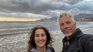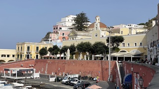 25.9.2021 - Von Neapel nach Nordwesten ziehen sich eine Reihe kleiner Inseln hinein ins Thyrenische Meer: Procida - Ischia - Ventotene und Ponza, nebst einiger ganz kleiner Nebeninselchen. Gestern sind wir an Ischia vorbei - dort ist überall Ankerverbot - in Schleichfahrt unter Code D nach Ventotene mit der Nachbarinsel Santa Stefano gesegelt. Im Abendlicht schnell eine Dinghitour zum ehemaligen Gefängnis auf St. Stefano, leider war der Zutritt verboten. Nun, das konnten wir nicht lesen, sind trotzdem hoch zum alten und sehr beeindruckenden Gemäuer, allerdings haben wir uns nicht getraut, in den Innenraum vorzudringen, den hat dann die Drohne erkundet. Das Gefängnis war bis in die 60er Jahre in Betrieb und durch den runden Aufbau sehr gut zu kontrollieren. Die Stadt Ventotene auf der namensgleichen Hauptinsel ist supersympathisch, nach all der unangenehmen Geschäftstüchtigkeit an der Festlandküste ist man hier wieder entspannt, das Essen ist lecker und auch mit dem Anlegen des Dinghi gibt es keinerlei Stress, im Gegenteil, wir bekommen freundliche Hilfe. Heute morgen Wanderung über die Insel, jetzt gerade mal wieder Druckluftflaschen für´s Tauchen aufgeladen und kurze Mittagspause am Rechner. Am Nachmittag schwimmt Silvia ein paar Kilometer und ich begleite sie mit dem SUP, mit dem wir dann gemeinsam eins Inselumrundung abschließen.