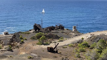 13.6.2021 - Nach zwei ruhigen Tagen in der Pedi Bucht auf Symi sind wir weitergezogen nach Alimia. Zunächst mit Schleichfahrt und drehenden Winden, dann immer flotter mit bis zu 16kn wahrem Wind. Eine Meile vor Alimia ist schlagartig die Fahrt aus dem Schiff und das Großsegel unten. Der Augspleiß im Flaschenzug des Großfalls hat aufgegeben, ohne Fall kam es zum Fall. Nun denn, erst mal ankern und den Inselberg mit Burgruine des Johanniterordens besteigen, morgen früh ist hoffentlich weniger Wind für die Kletterei im Mast.