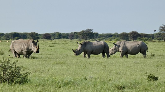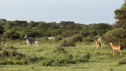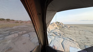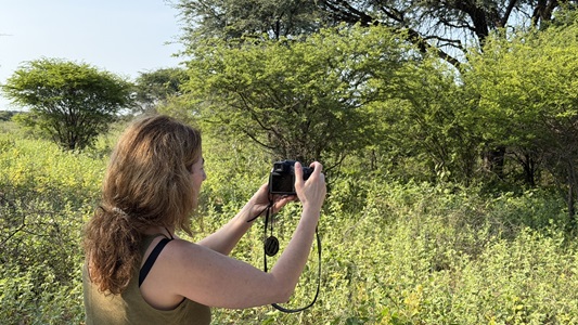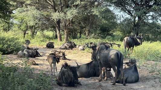 26. & 27.12.25 - Als erste Tat müssen wir Bargeld und eine Erstausstattung mit Lebensmitteln und Getränken bekommen. Gaborone ist eine durchaus moderne Großstadt, aber natürlich müssen wir uns erst mal an die Andersartigkeit gewöhnen. Wir finden eine große Mall und bekommen alles was wir brauchen. Bein Beladen des Autos fühlen wir den Temperatursprung von 0° auf 30° heftig und wir freuen uns auf die Fahrt mit gut funktionierender Klimaanlage. Unser erstes Ziel ist das Khama Rhino Sanctuary. Nach dem Gate geht es ein par Kilometer auf Sandpiste zu unserem Campground, Tisch und Stühle werden aufgestellt und das Dachzelt aufgeklappt. Alles spannend, weil zum ersten Mal. Silva zaubert etwas mit der Bordküche und völlig fasziniert machen wir einen Abendspaziergang durchs Camp. Die Geräuschkulisse, der Geruch, das Licht und die ersten Vögel und Antilopen begeistern uns.